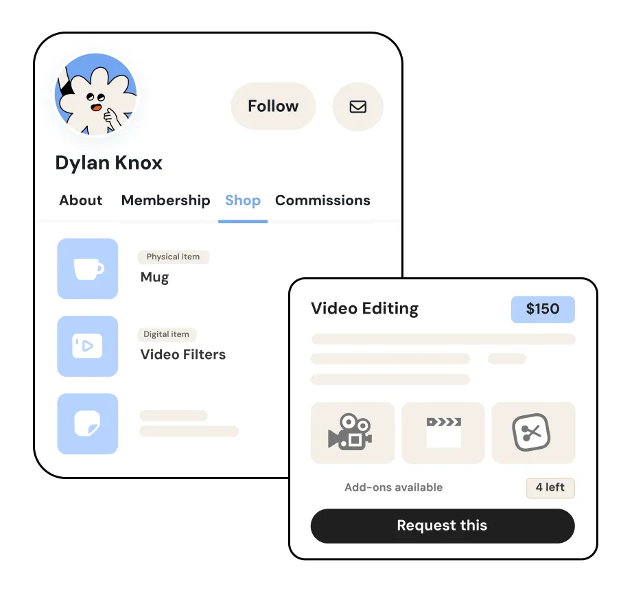 Like Patreon you can set up membership tiers, but on Fi-Fy you can also accept tips, open a shop and take commissions with lower service fees.